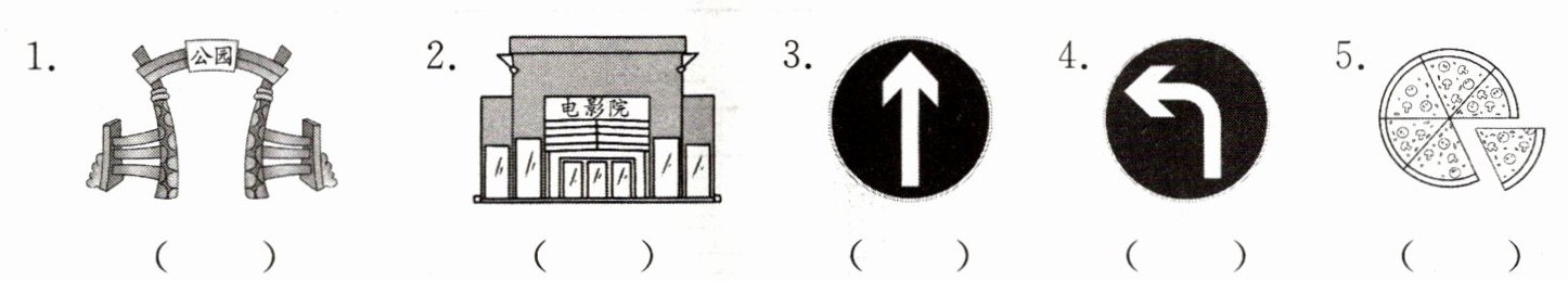 二、路上,安安热心地给他人指路。请根据图片提示,补全句子(每空一词)。