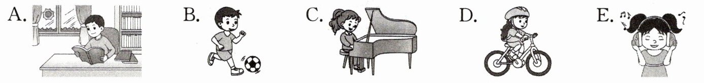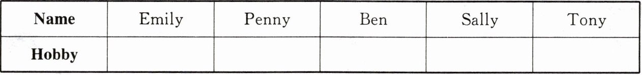 一、Mary 调查了几个笔友的爱好。听短文,为每个人选择对应的图片。