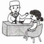 1. 第一幅图片中,Ann坐在桌前,旁边有医生形象的人物,Ann看起来状态不佳,可能是生病了。