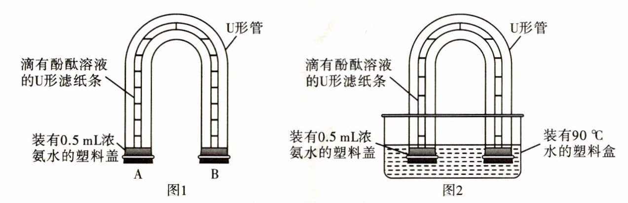 (1) 实验一:如图1所示,将滴有酚酞溶液的滤纸条置于U形管中,向A处的塑料盖中滴入浓氨水,观察到的现象是______。