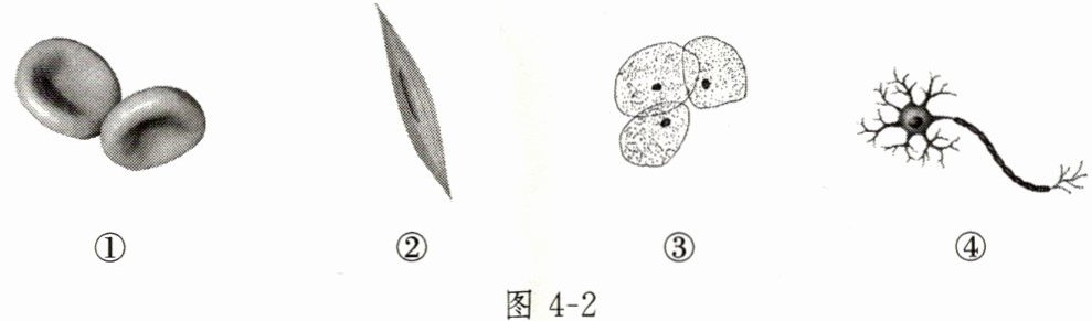 6. 观察图 4-2 所示的人体内不同形态细胞的模式图,试着写出这些细胞的名称。