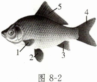 7. 鲫鱼的外形如图 8 - 2 所示,请据图完成下列习题。