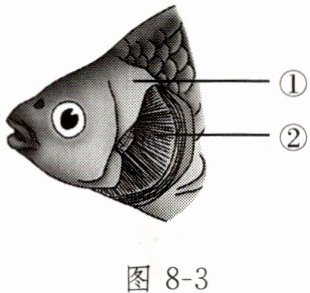 8. 图 8 - 3 是鱼鳃的位置及其结构示意图,请据图完成下列习题。