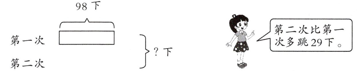 4. 笑笑两次跳绳一共跳了多少下?先在图中画一画,再算一算。