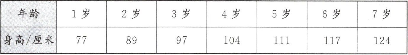2. 乐乐从1岁到7岁每年的身高情况如下表。