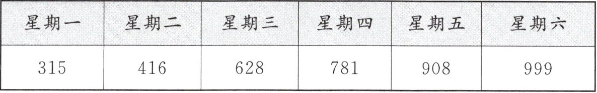 3. 赵叔叔每天开车送货,星期一送货前汽车里程表的读数是218千米。星期一到星期六每天晚上休息时汽车里程表的读数记录如下表。(单位:千米)