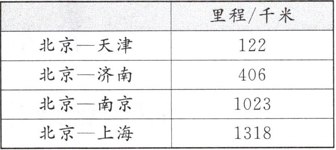 5. 下面是“北京—上海”沿线主要车站的火车里程表。
