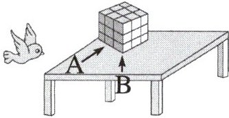 4. 如图,一只小鸟发现了一个魔方,魔方的6个面分别涂了6种不同的颜色。小鸟分别在A,B两处看魔方。