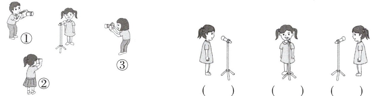 2. 下面三幅图分别是谁看到的?请把序号填在括号里。