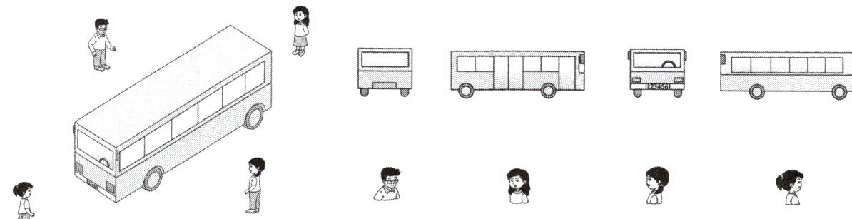 3. 下面四幅图分别是谁看到的?想一想,连一连。