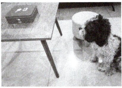 3. 笑笑的桌子上放着一个礼品盒,小狗崽崽好奇地想看个究竟。