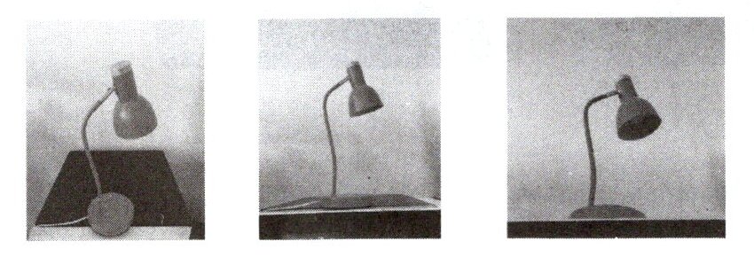 2. 桌子上放了一个台灯,10 岁的思思、2 岁的天天和爸爸站在桌子旁同一位置看这个台灯。下面三幅图分别是谁看到的?填一填。