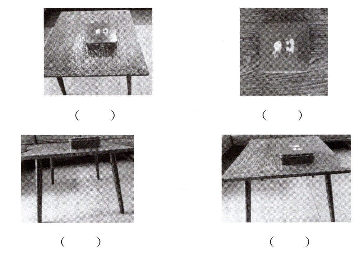 (1)请你按崽崽四次观察的顺序,在以下四幅图下面的括号里标出①②③④。