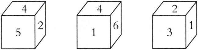 4. 正方体的六个面上分别写有数字 1,2,3,4,5,6,从 3 个不同角度看该正方体,看到的结果如下图所示。正方体上的数字 1,2,3 的对面分别是多少?
