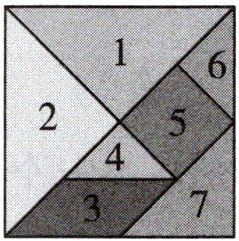 利用$4$号和$6$号(答案不唯一,只要是两个锐角能拼成直角的都可以,如两个小三角形)可以摆出一个直角;