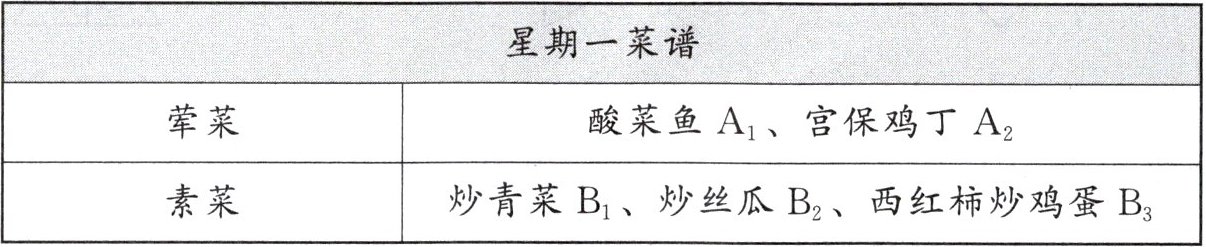 1. 一种荤菜搭配一种素菜,共有几种不同的搭配方法?请在横线上补全搭配方法。