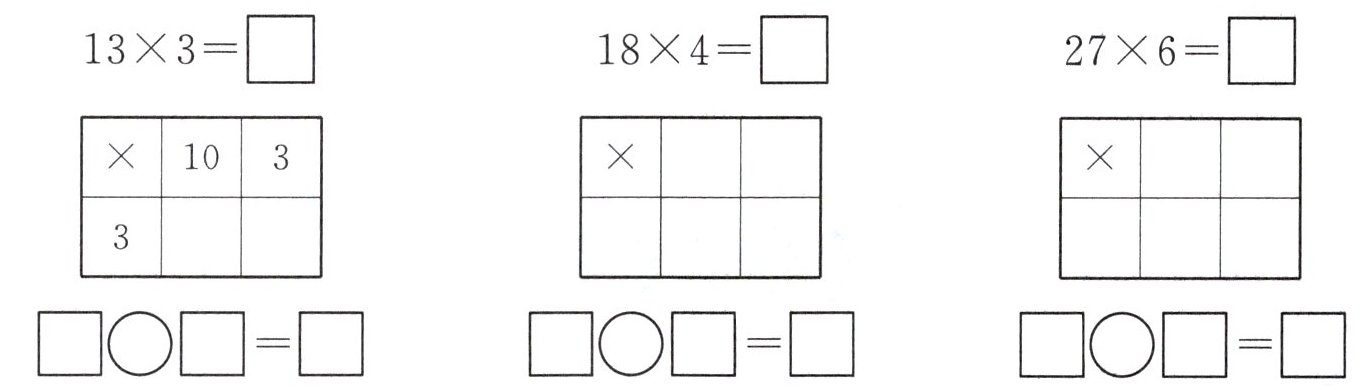 $10×3 = 30$($10$个一组,共$3$组,$10×3$表示$3$个$10$是多少,根据乘法口诀“一三得三”,再在$3$后面加一个$0$,即$10×3 = 30$);