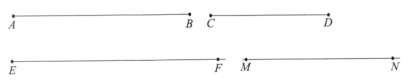 假设用直尺测量(实际操作中,将直尺的$0$刻度线与线段的一个端点对齐,另一个端点对应的刻度值就是线段的长度),可以量出它们的长度(具体长度根据实际测量而定)。