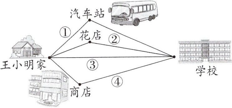5. 下面是王小明同学从家到学校的四条路,请问王小明同学走哪条路最近,为什么?