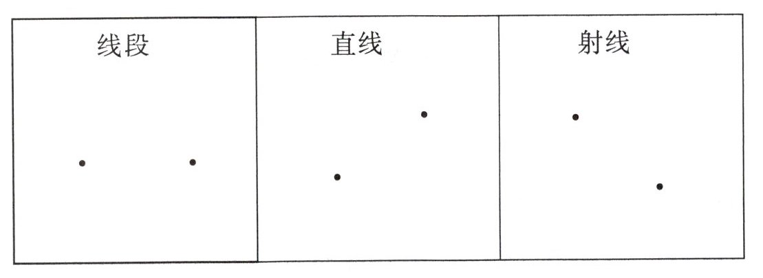 3. 对于射线:以一个点为端点,向另一个点的方向无限延伸画出射线。
