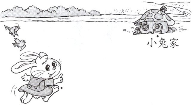 (1) 直线连接小兔家与小兔所在位置(为点与点之间的线段)。