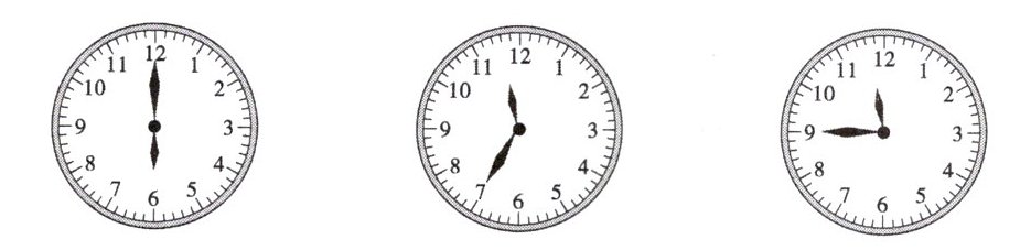 5. 先写出每个钟面表示的时刻,再写出时针和分针所形成的角的名称。