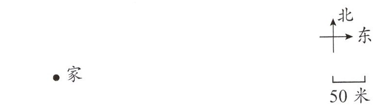 从学校出发向西北走50 米,再向西走 200 米,然后向南走 100 米,最后向西南走 50米回到家。