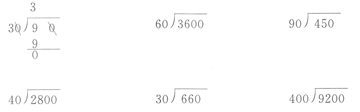 根据商不变规律,被除数和除数同时除以$10$,转化为$3\overline{)9}$,$9÷3 = 3$。
