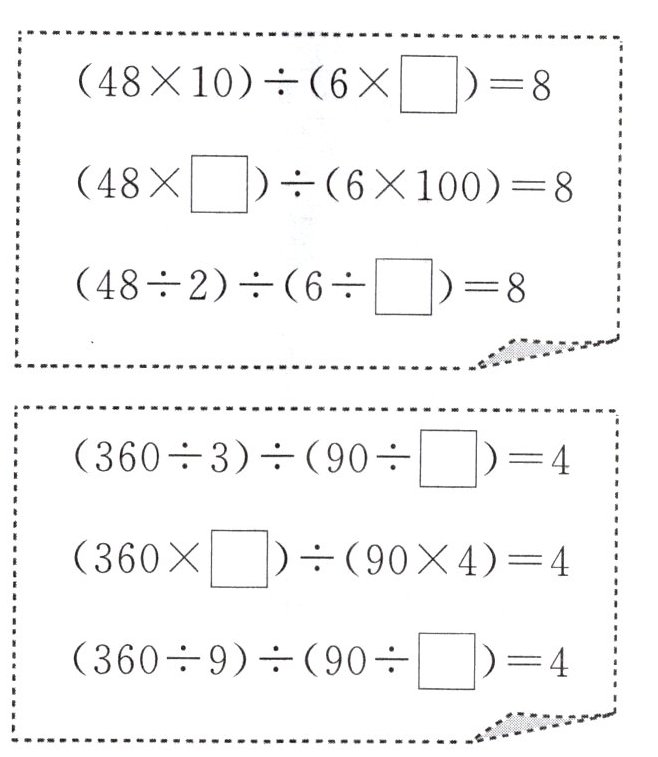 5. 要想使每道题的商都一样,$□$里填什么数?为什么?