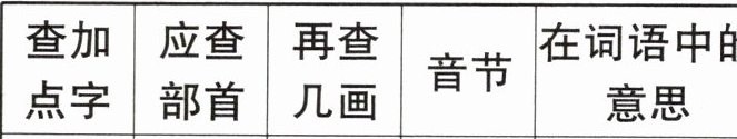 |查加点字|应查部首|再查几画|音节|在词语中的意思|