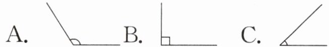 )角,大于 $90^{\circ}$ 而小于 $180^{\circ}$ 的角是(钝