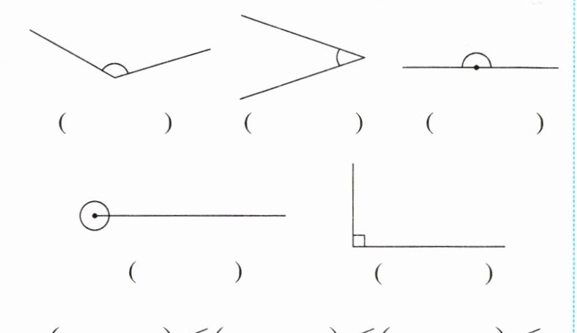 )个直角的度数。(2)小于 $90^{\circ}$ 的角是(