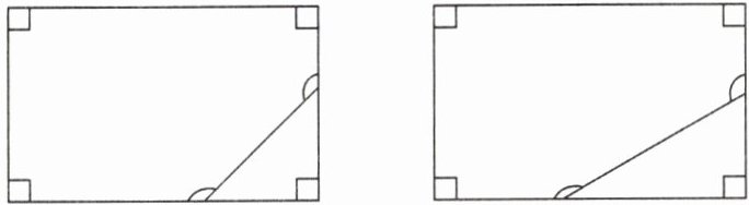 4. 如图所示,将一张长方形的纸剪去一个角,使剪去的部分与你的一个三角尺同样大。剩下的纸有几个角?各角的度数是多少?