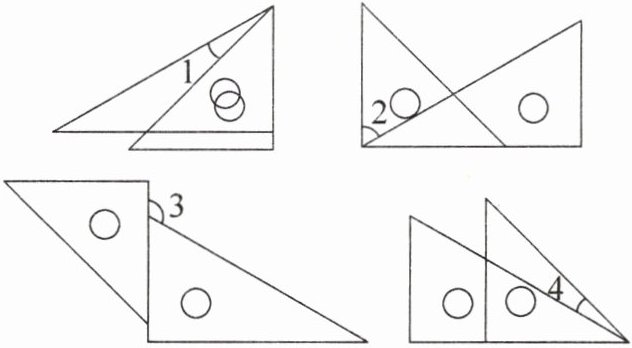 3. 将一副三角尺按下图所示的方式摆放,想一想,图中所标的角各是多少度。
