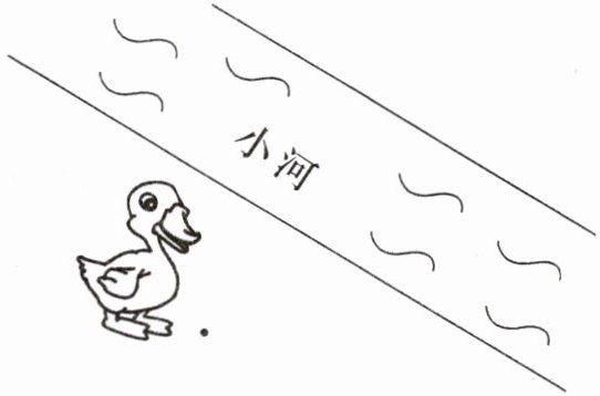 5. 小鸭子要到河对岸去,它怎样过河最近?请在图中表示出来。
