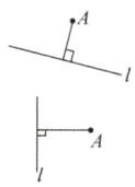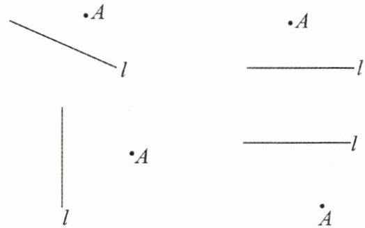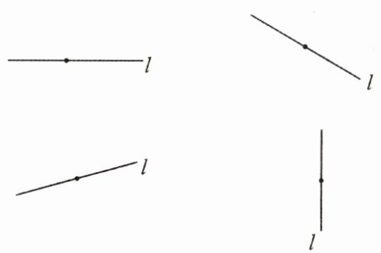 1. 过直线 $ l $ 上一点,画这条直线的垂线。