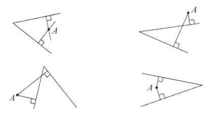 3. 过点 $ A $ 分别画角的两条边的垂线。