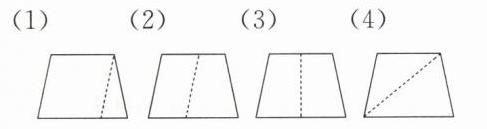 3. 在梯形里面画一条线段,按要求分成两个图形。