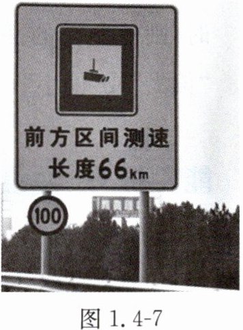 11. 目前,在很多高速公路上都有“区间测速”装置,用于监测汽车通过某段路程的平均速度。如果汽车的平均速度超过了该路段的最高限速,汽车就被判为“超速”。某段高速公路上的区间测速标志如图1.4-7所示。若某辆汽车通过该区间的时间为30min,则这辆汽车通过该区间是否会被判为“超速”?请通过计算说明。