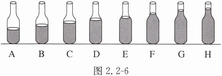 12. 如图2.2 - 6所示,在8个相同的玻璃瓶中,灌入质量不同的水,水面的高度不等。