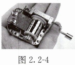 10. 如图2.2 - 4所示,“八音盒”是一种机械音乐盒。上紧发条后圆筒转动,圆筒上按一定规律分布着一些凸点,它们拨动簧片就会奏出乐曲。长度不同的簧片发出的声音不同,原因是(