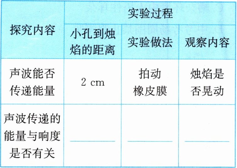 |声波能否传递能量|2cm|拍动橡皮膜|烛焰是否晃动|