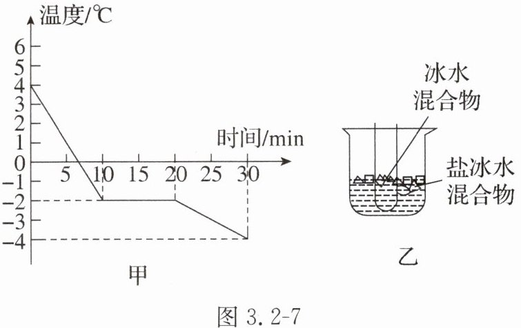 (4)若将一个装有冰水混合物的试管放入正在熔化的盐冰水混合物中,如图 3.2 - 4 乙所示,试管中的冰水混合物中的冰会