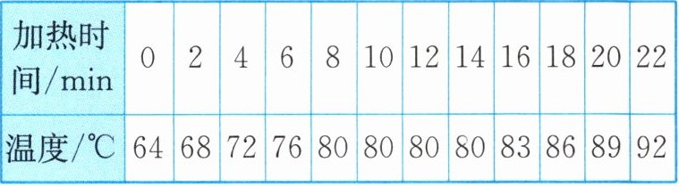|加热时间/ $ \mathrm{min} $| $ 0 $| $ 2 $| $ 4 $| $ 6 $| $ 8 $| $ 10 $| $ 12 $| $ 14 $| $ 16 $| $ 18 $| $ 20 $| $ 22 $|