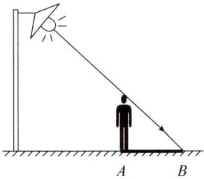 11. 小华从夜晚的路灯下走过时,在地面上观察到了自己的影子,如图4.1-7所示。请在图中画出小华站在路灯下A点处时形成影子的光路及此时影子的范围AB。