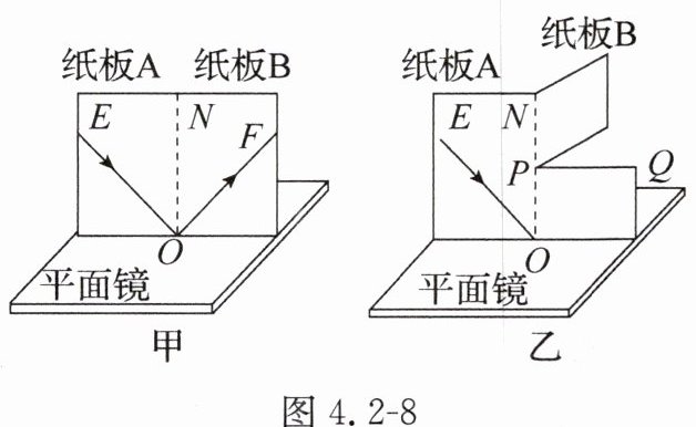 (4)在图乙中,将纸板B沿PQ剪开,把纸板B的上半部分向后折转。实验时发现在纸板B的上半部分