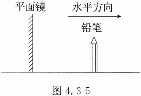 8. 如图 4.3 - 5 所示,将平面镜和铅笔竖直放置在水平桌面上。下列说法正确的是(