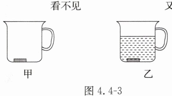 3. 如图4.4 - 3所示,陶瓷茶杯底部放有一枚硬币,人移动到某一位置时看不见硬币,往茶杯中倒入一些水后,又能够看见硬币了。关于“看不见”和“又看见了”两种情况,下列分析正确的是(
