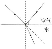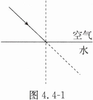 1. 如图4.4 - 1所示,一束光从空气斜射入水中,请画出折射光线和反射光线。