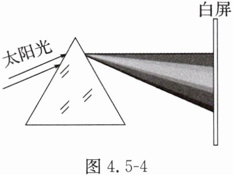 6. 如图4.5-4所示,太阳光通过三棱镜后,被分解成各种颜色的光,在白屏上形成一条彩色光带,此现象说明太阳光是